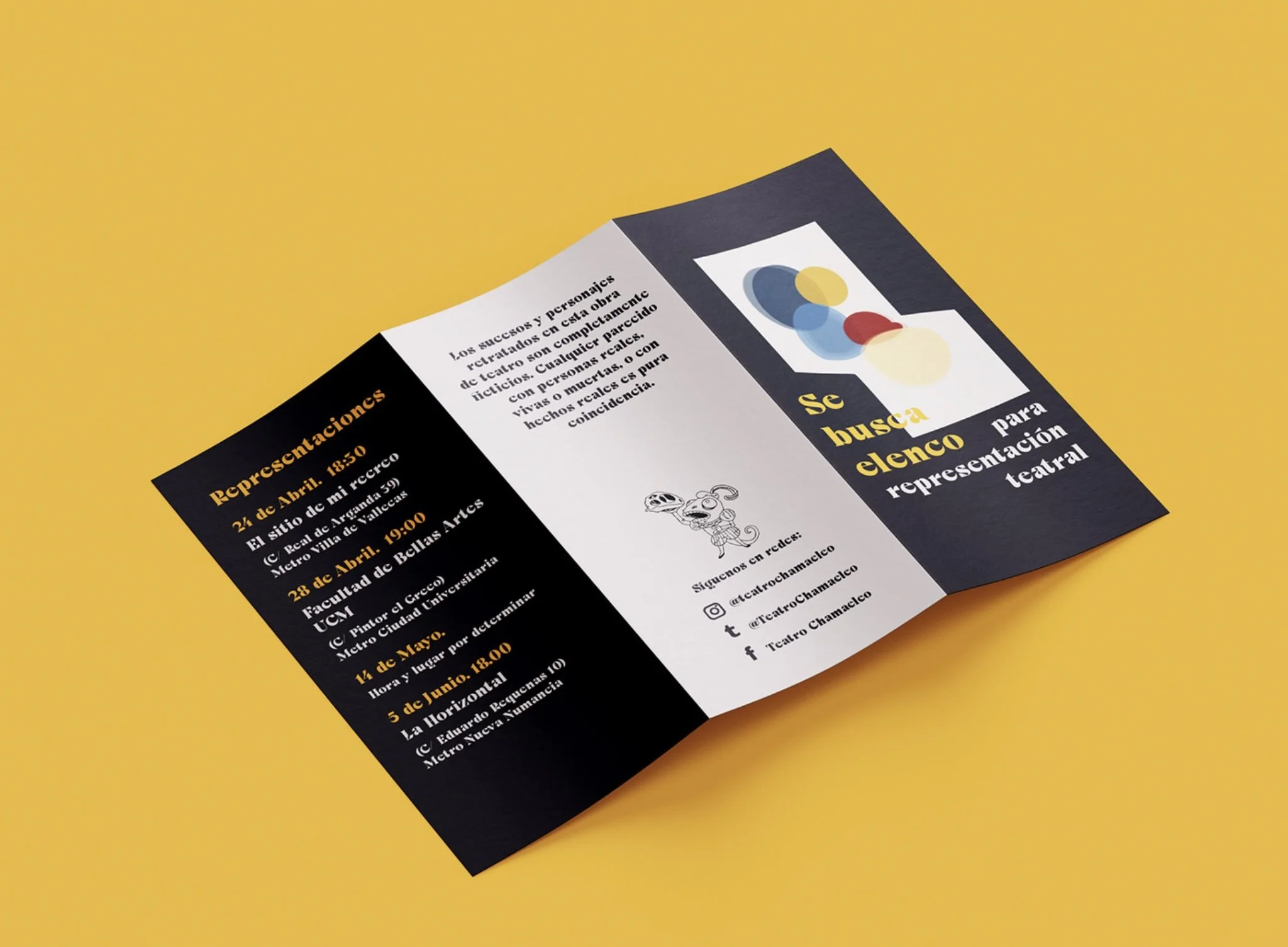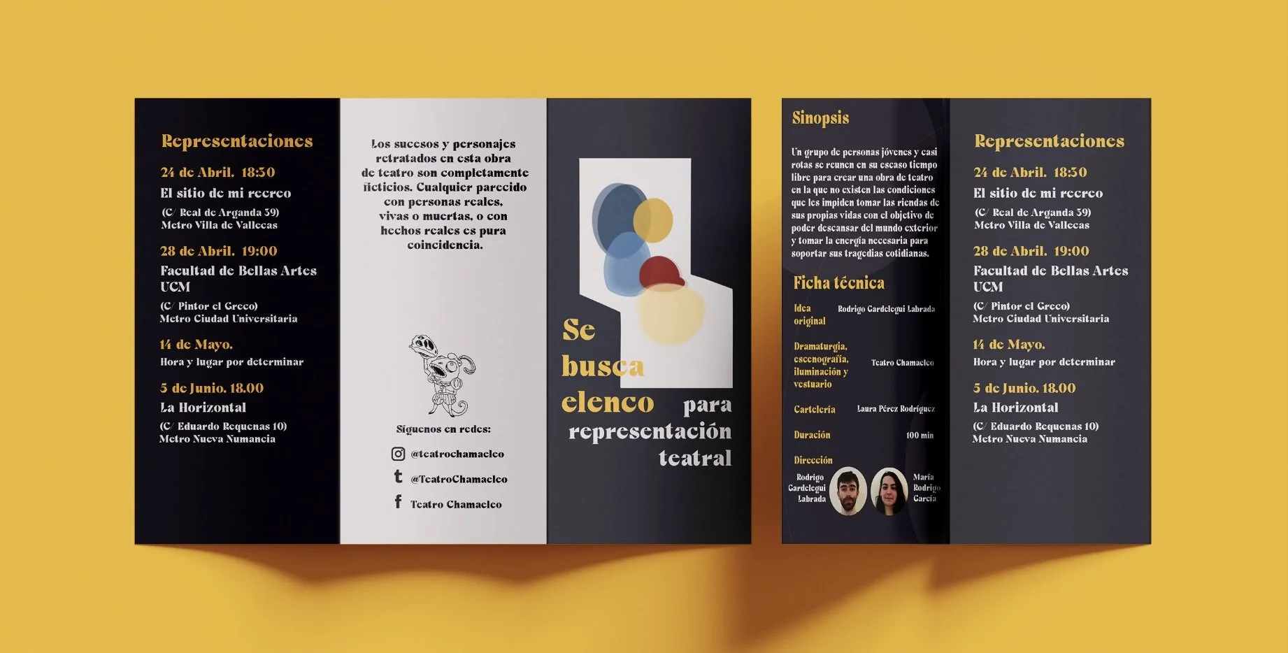 Posters and flyers for theatre play: “Se busca elenco para representación teatral” (Cast wanted for theatre performance)
